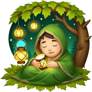 forest character wrapped in leaf blanket sleepy emoji | AI Emoji Generator