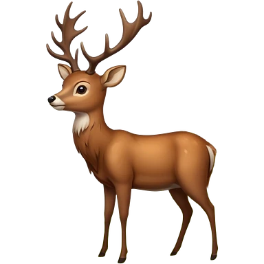 A majestic deer with large antlers, walking gracefully through a serene forest, surrounded by soft green foliage and dappled sunlight, in a minimalist and clean emoji style. emoji