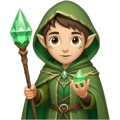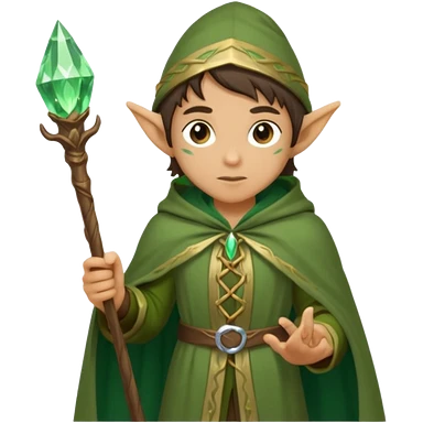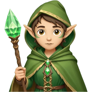 { "type": "human", "look": "forest elf mage, green cloak, wooden staff, glowing crystal tip", "description": "a forest elf mage in green cloak holding a wooden staff with a glowing crystal tip" } emoji