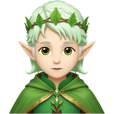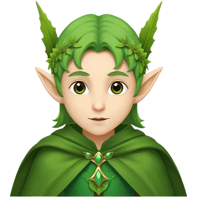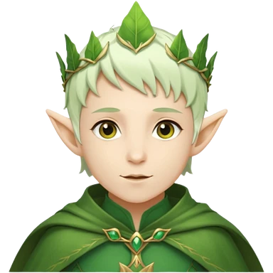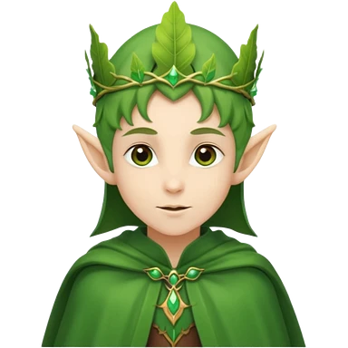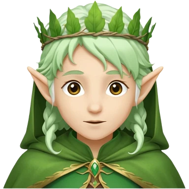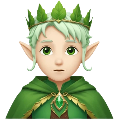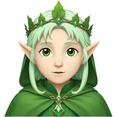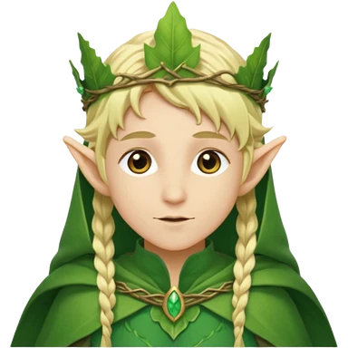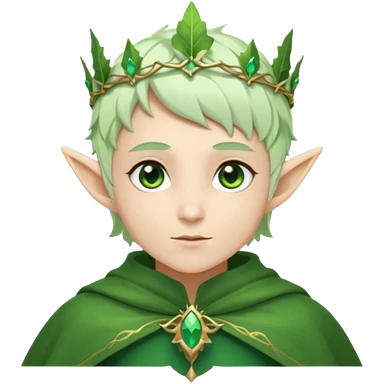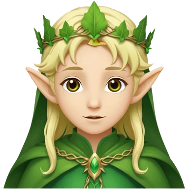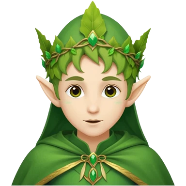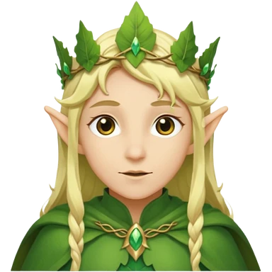 Forest Elf – elegant green-skinned elf with leaf crown and cloak, blonde hair emoji | AI Emoji Generator