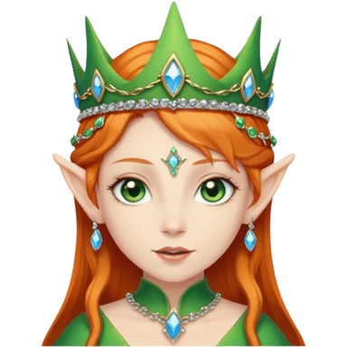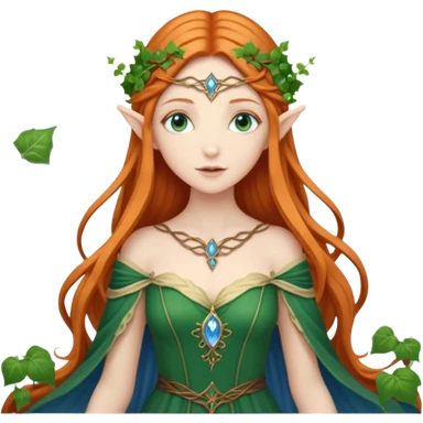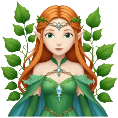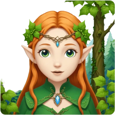 Hyper realistic green ivy forest elf mage fairy queen pale skin blue-eyed ginger hair emoji