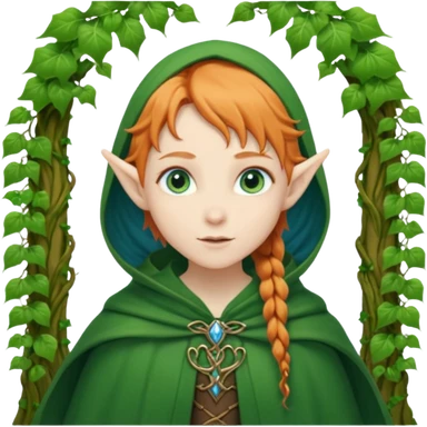 forest elf, brown braid, green cloak, gentle expression emoji