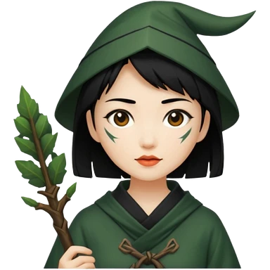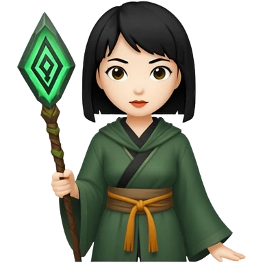 east asian forest mage woman short black hair rune emoji