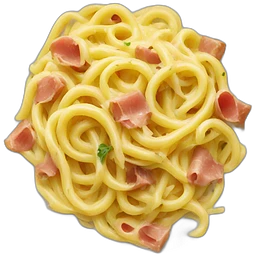 Fork with carbonara spaghetti twirled around it, isolated emoji