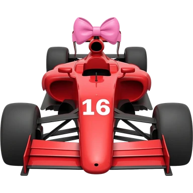 Formula 1 car ferrari number 16 with a pastel pink bow on top emoji