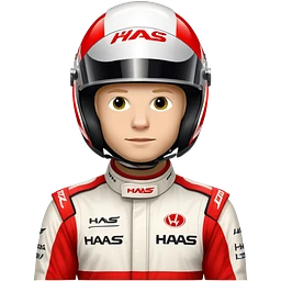 Kevin Magnussen, Formula 1 driver for Haas team, wearing white and red Haas racing suit and helmet emoji