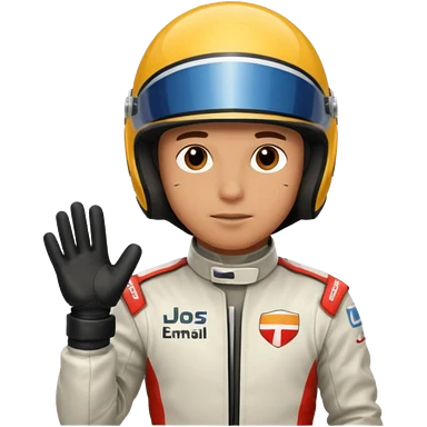 Robert Kubica, waving, in Formula 1 racing suit emoji
