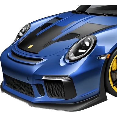 GT3RS in Royale blue with a black hood, blue spoilers, black text, black rims, and yellow headlights, emoji