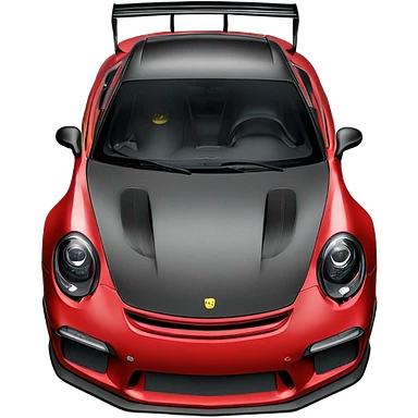 GT3RS in Royale red with a black hood, blue spoilers, black text, black rims, and yellow headlights, emoji