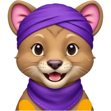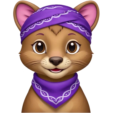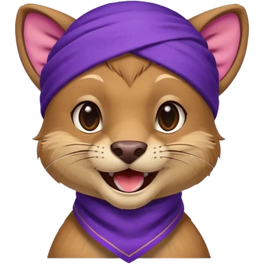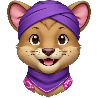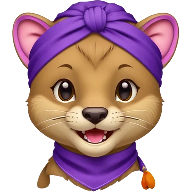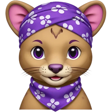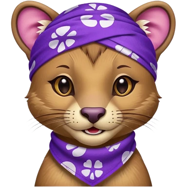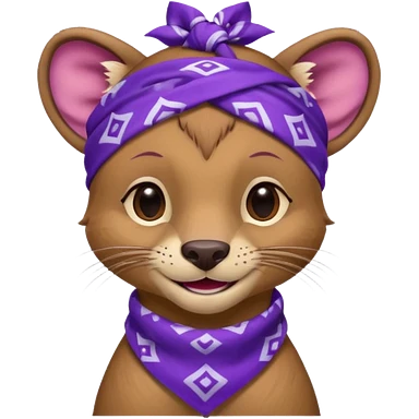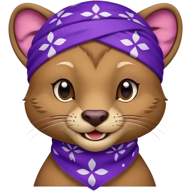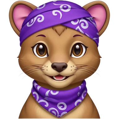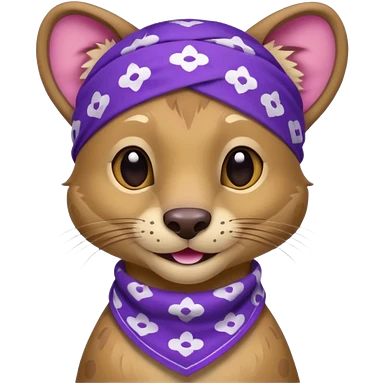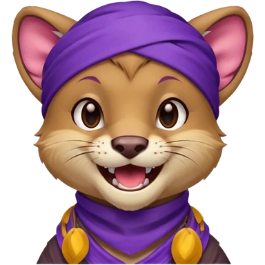 Fossa animal in a purple bandana with white patterns on the forehead smiley emoji