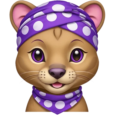 Fossa animal wearing a bandana on the forehead in purple color with white smiley patterns emoji