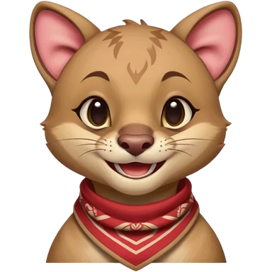 Fossa animal in a red bandana dressed as a rock singer winks emoji | AI Emoji Generator