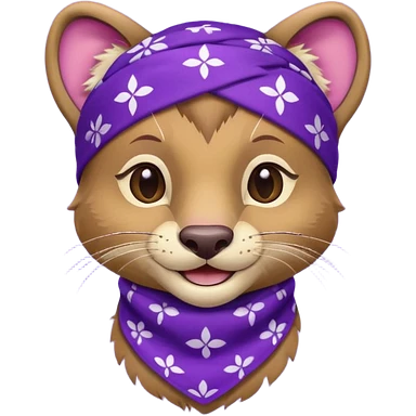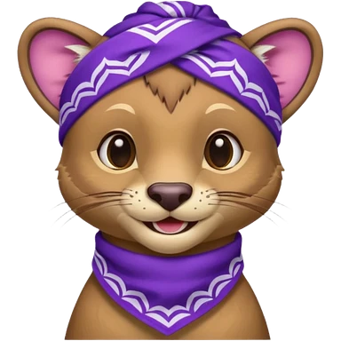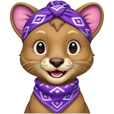 Fossa animal in a purple bandana with white patterns on the forehead smiley emoji