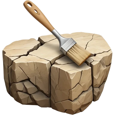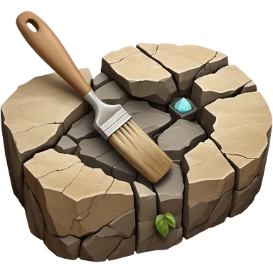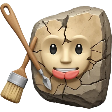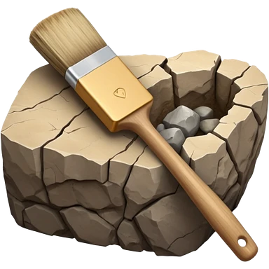 3D render of Archeology Brush, embedded in a chunk of rough sedimentary rock, cracked stone texture, ancient fossil aesthetic,pale wooden handle with dusty beige bristles, matte dry finish, Apple emoji style, isolated on white background --v 6.0. emoji
