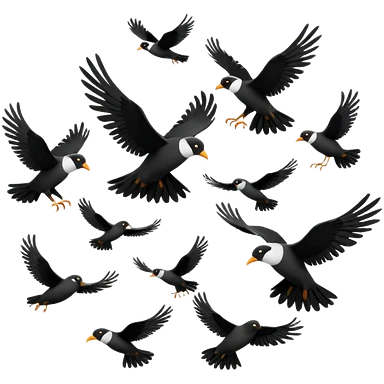 A flock of birds soaring across the sky, their wings spread wide as they glide gracefully through the air, creating a sense of freedom and movement emoji