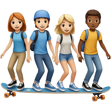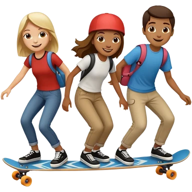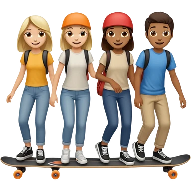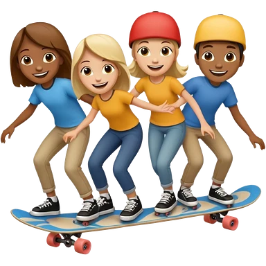 Four people (two black guys, one white guy, one white girl) on one long skateboard emoji