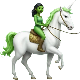 four-legged red unicorn white. a green amazon alien woman, on a unicorn emoji
