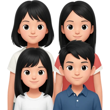 four siblings of 3 girls all asian black hair and 1 asian boy black hair emoji