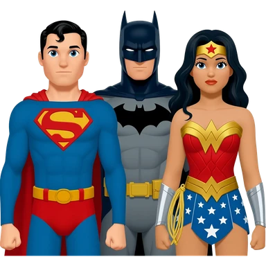 costumed characters including Superman, Batman, and Wonder Woman emoji