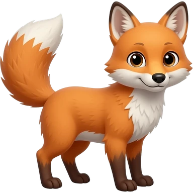 emoji of a dancing fox. orange body with fluffy tail. vibrant, exaggerated white paws. soft fur details. playful. enlarged head in cartoon style. head turned towards viewer. 3d lighting. no cast shadows emoji