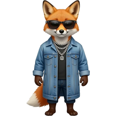 Fox in denim Jacket, waist size, multiple chain jewelleries , sunglass emoji