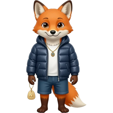 Fox in puffer Jacket, waist size, jewellery emoji