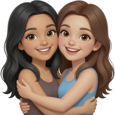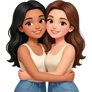 Warm hug of two cream skin girls with black and brown hair like this 🫂 emoji