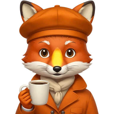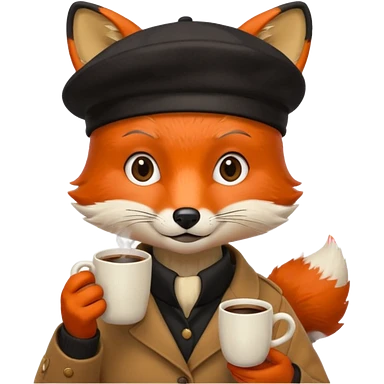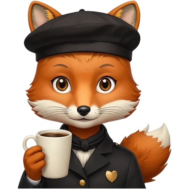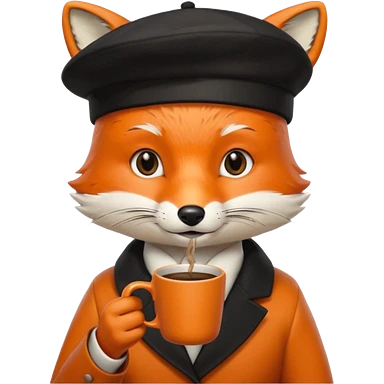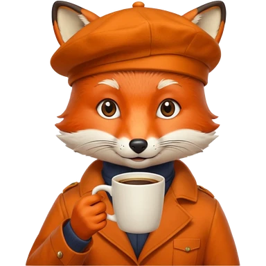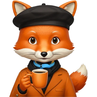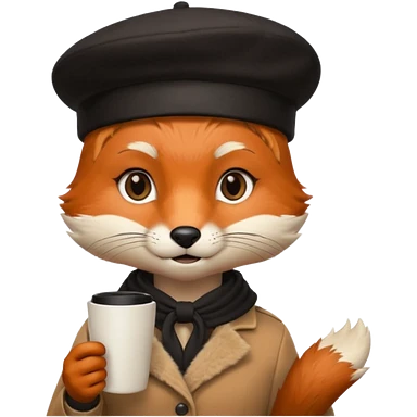 Fox in beret holding coffee cup emoji | AI Emoji Generator