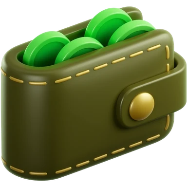 3D isometric leather wallet icon, glowing digital coins. Minimalist professional style, emerald green & gold accents. Soft studio lighting, 8k Octane render, ray-tracing detail. Isolated on white background, premium literary aesthetic --v 6.0 emoji