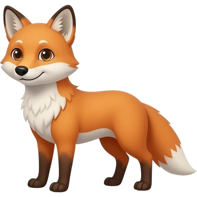 A 2D cartoon fox emoji with a happy expression, smiling and showing joy emoji
