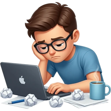 exhausted student with glasses with thousands of documents @emoji emoji