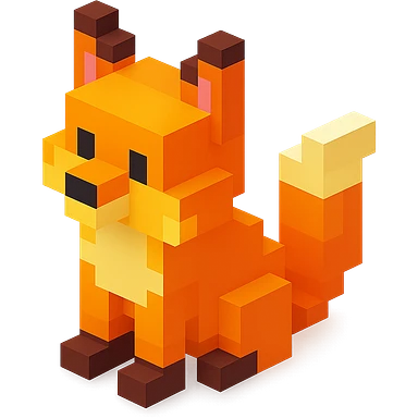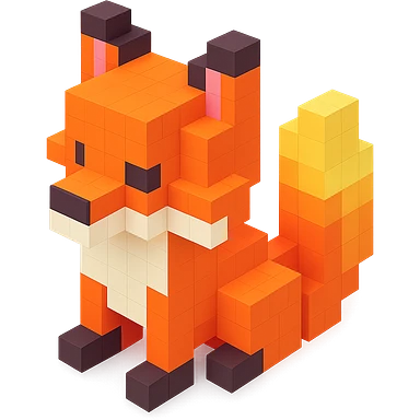 voxel fox inspired by Minecraft, square features, bushy tail, sitting on a grassy block emoji