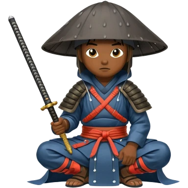 Samurais in Hat, Samurai kneeling under rain hat emoji