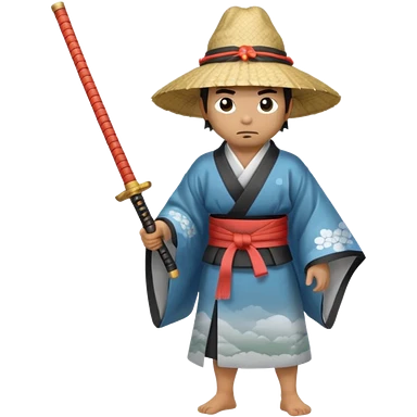 Samurais in Hat, Lone samurai in hat, blue dress emoji