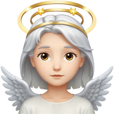 Angel with silver hair and glowing halo emoji