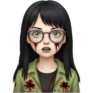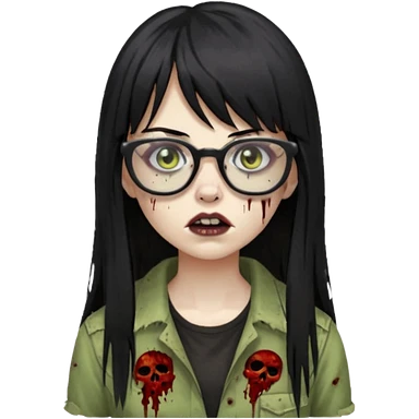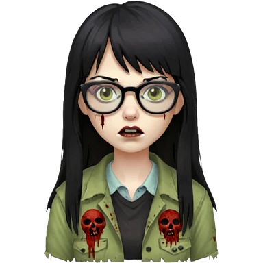 franja, oculos, cabelo preto e longo, mulher e zumbi emoji | AI Emoji Generator
