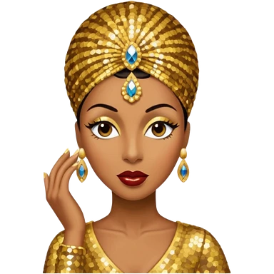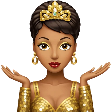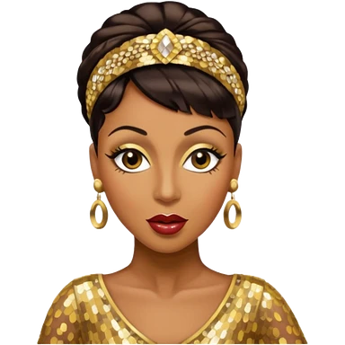 Josephine Baker with dark brown hair, gold outfit emoji