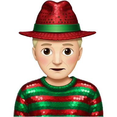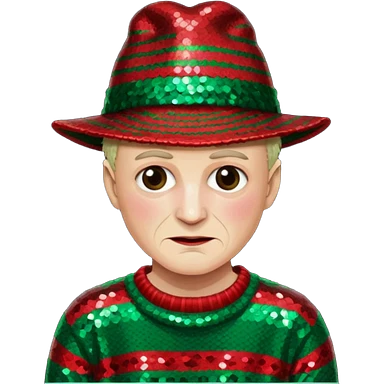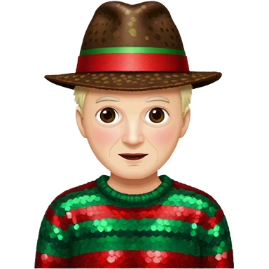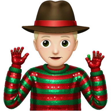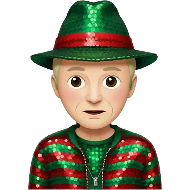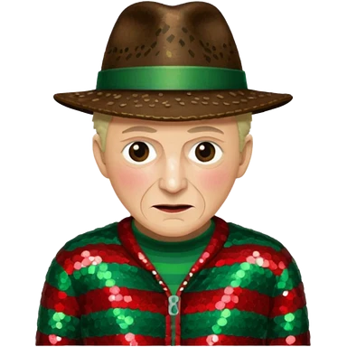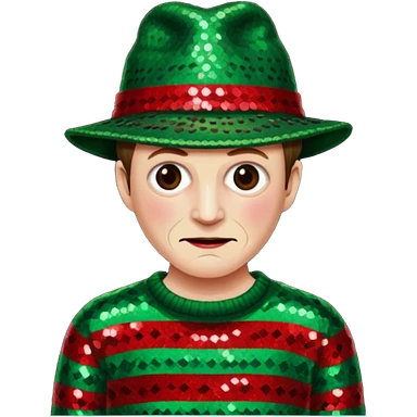 Freddy Krueger with red and green stripe sequin sweater, dark brown sequin hat emoji