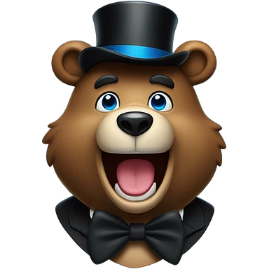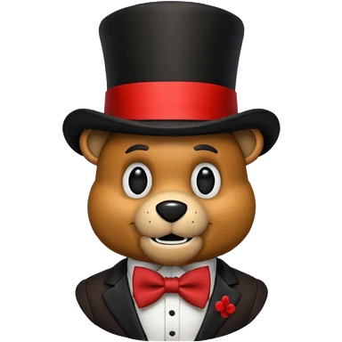 Freddy Fazbear as a cute bear animatronic, brown fur, top hat, bow tie emoji