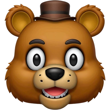 Freddy Fazbear from Five Nights at Freddy's as a cute emoji, brown bear animatronic, black top hat, bow tie, friendly expression, simple background emoji
