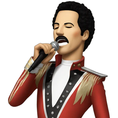 Freddy Mercury posing like a lambda symbol emoji | AI Emoji Generator