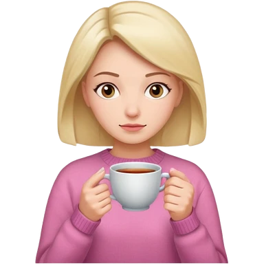 woman whith a pink sweat who is cold whith a cup of tea emoji