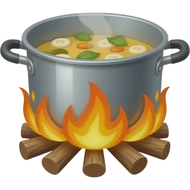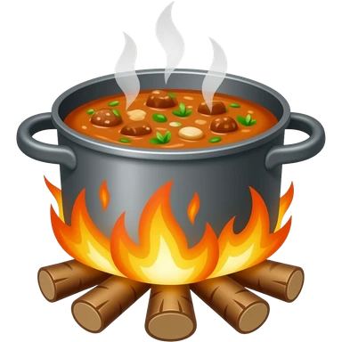 the food is cooked in a pot over a campfire emoji