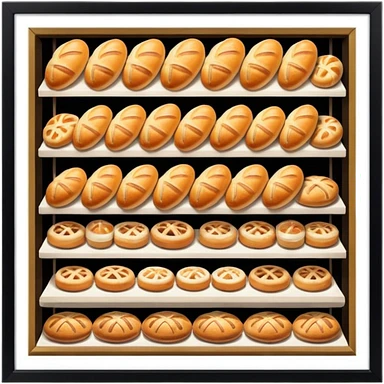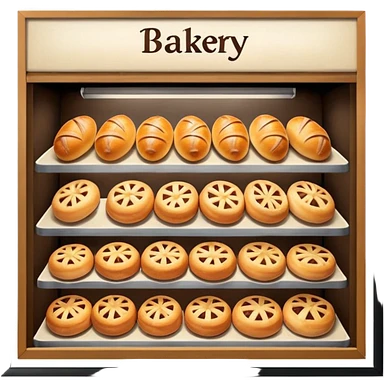 a bakery building situated between a supermarket and a police station, all three buildings visible, emoji style emoji