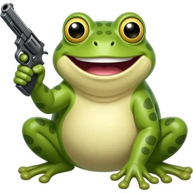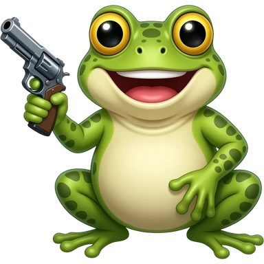 bufo frog meme with a pistol, happy expression - use the following image as a reference: https://www.emojis.com/emoji/bufo-frog-meme-with-a-pistol-angry-expression-ms3uxATb6f5 emoji
