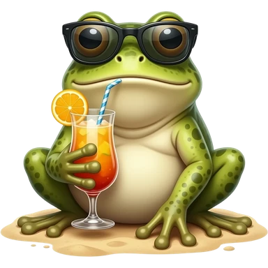 bufo-frog-with-fashionable-sunglasses-drinking-a-bright-fruity-cocktail-sitting-on-the-beach emoji