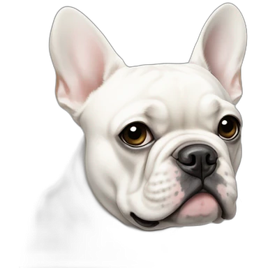 Fluffy French bull dog with a black spot on his face but the dog is white emoji