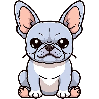 Grey French bulldog with turquoise collar sitting facing forward emoji