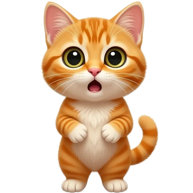 A little orange kitten standing up with a surprised look on its face emoji