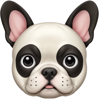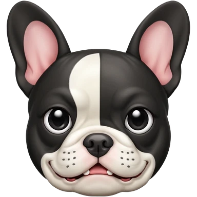 french bulldog with a birthday hat and black and white and grey coloring. please make it emoji style please. also please make the dog have a pink hat emoji